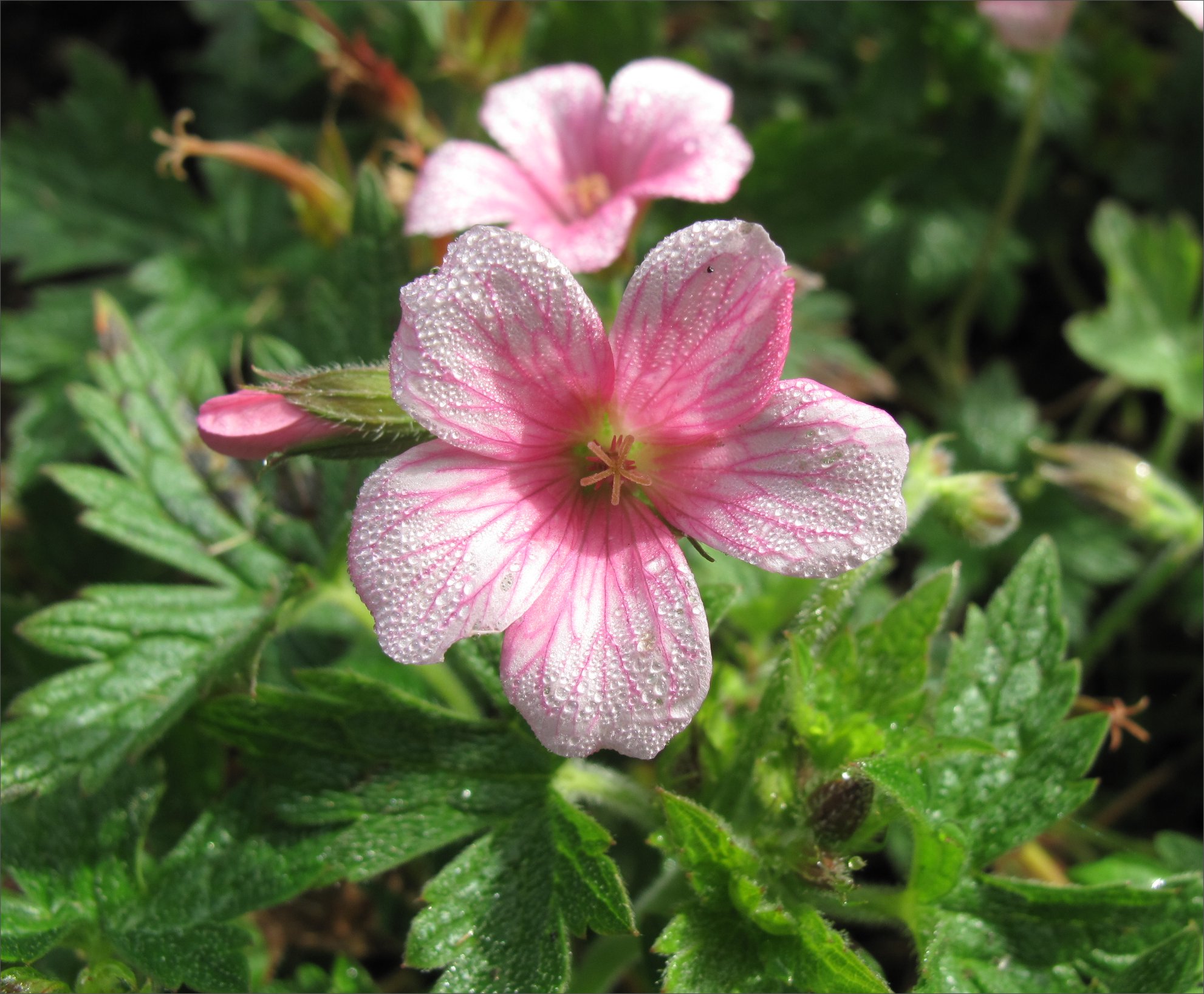 Geranium Oxonianum is a cross between Geranium endressii and G. versicolor. Many named cultivars of this fertile cross exist, most showing variations in flower, leaf color, and habit.Geranium x Oxonianum was first introduced into commerce around 1900 in honor of G. Claridge Druce (1850-1932), British botanist, pharmacist and plant collector.