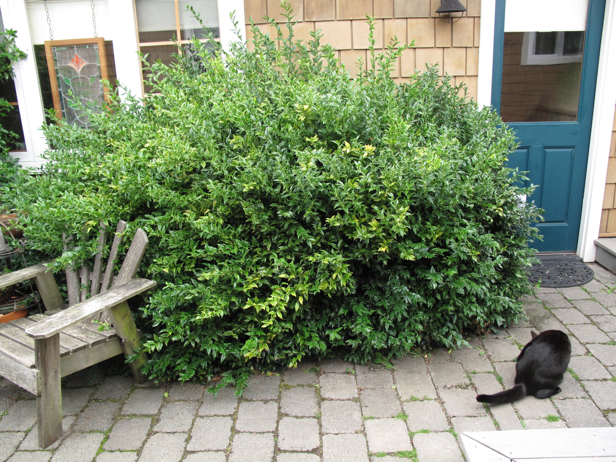 Sarcococca ruscifolia (Fragrant Sweet Box) and Zoe (Felis domesticus)