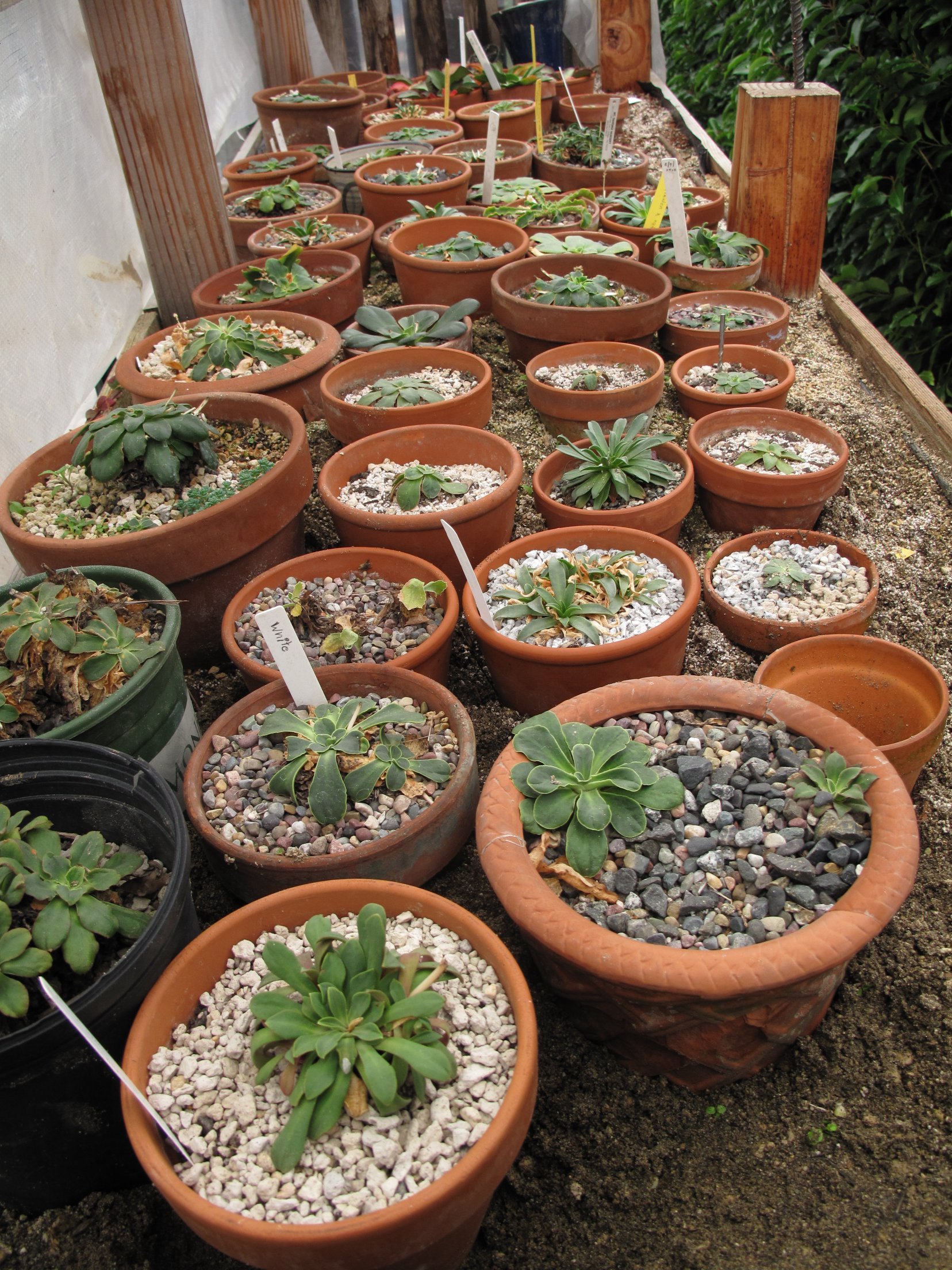I’ve propagated my collection — currently about 100 plants — from seeds I purchased from Ashwood Nursery in England, offsets, and from natural crosses that occurred between plants on my sand plunge bench.