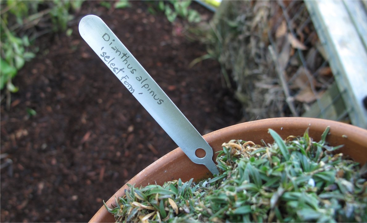 And now a bit of plant tag nostalgia. Made in England by the British company Clear Span, Hartley Metal Labels are undoubtedly no longer offered for sale anywhere. These “vintage” plant tags were offered to me at recent meeting of the Northwest Chapter of the North American Rock Garden Society.