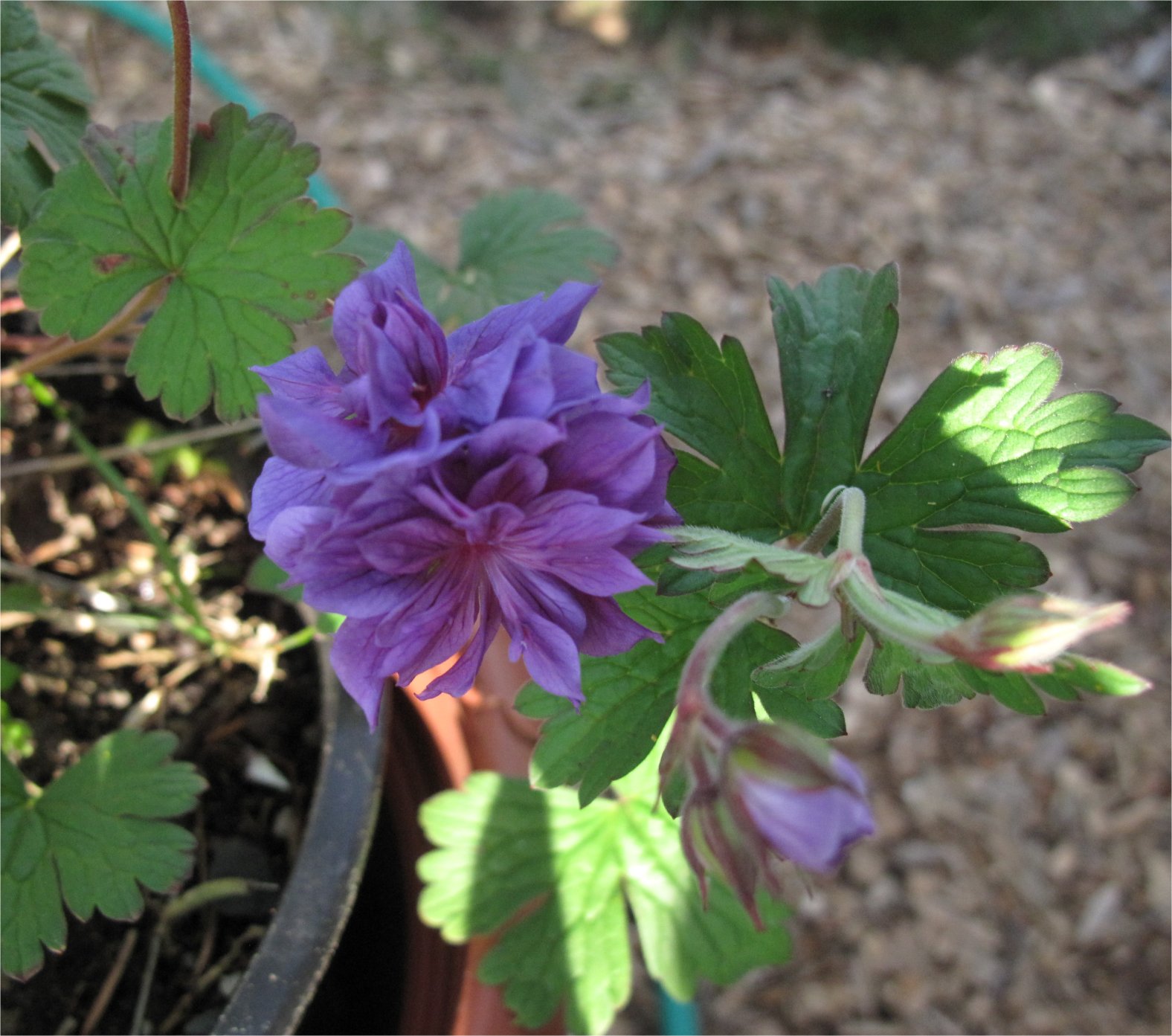 I love to trade plants or give them away outright. Right now I have my one main plant of Birch Double in a pot and it’s rather week this year. I have a few small seedlings entangled in other geraniums, but the leaves of “Birch Double are distinct. I plan to tease them out soon carefully (in the next couple of weeks) and pot them up in 4-inchpots. One will be for you. Email me directly and we’ll arrange a way to get you one.