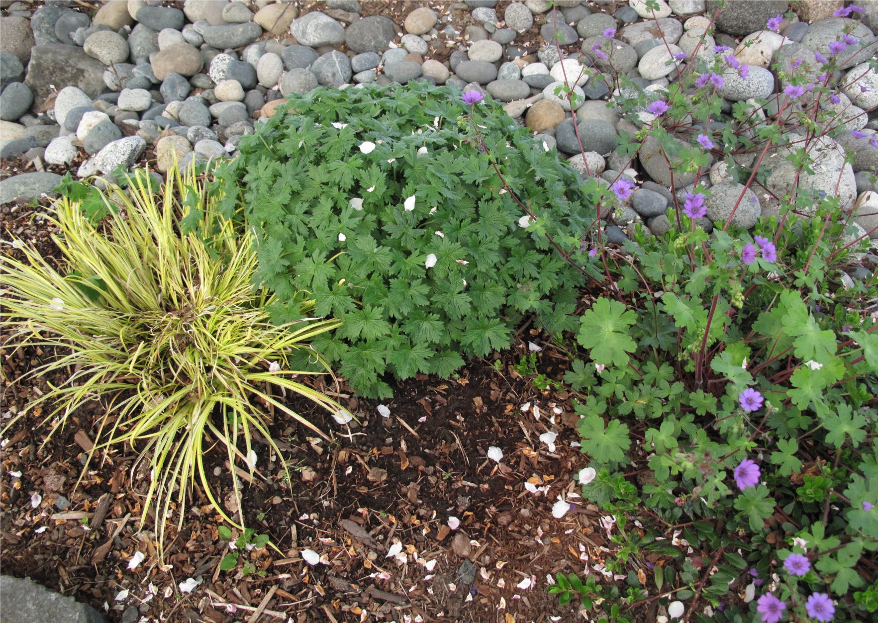 The more widely known plant actually belongs to the genus Pelargonium and here in temperate Pacific Northwest can seldom survive our winters without some help. Not surprisingly, Hardy Geraniums, are tougher plants: