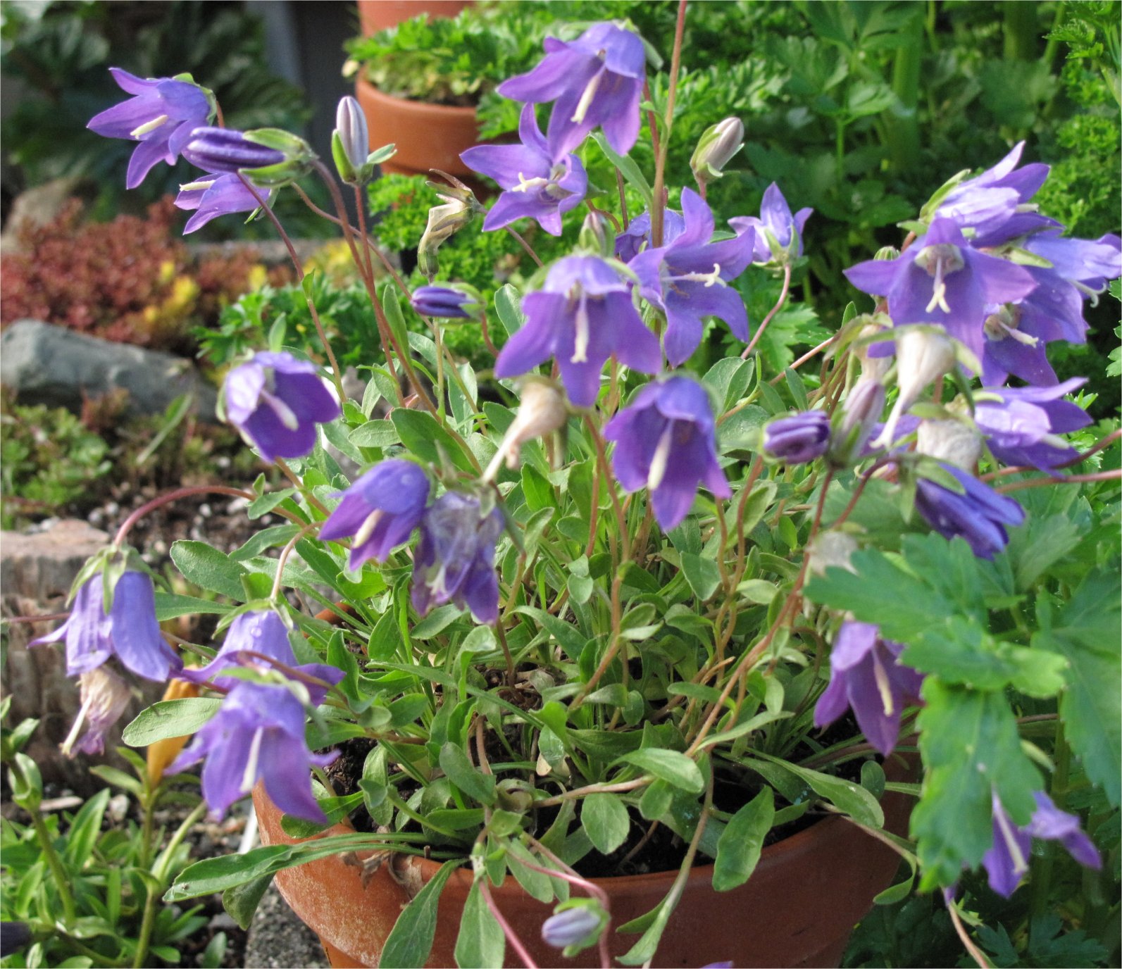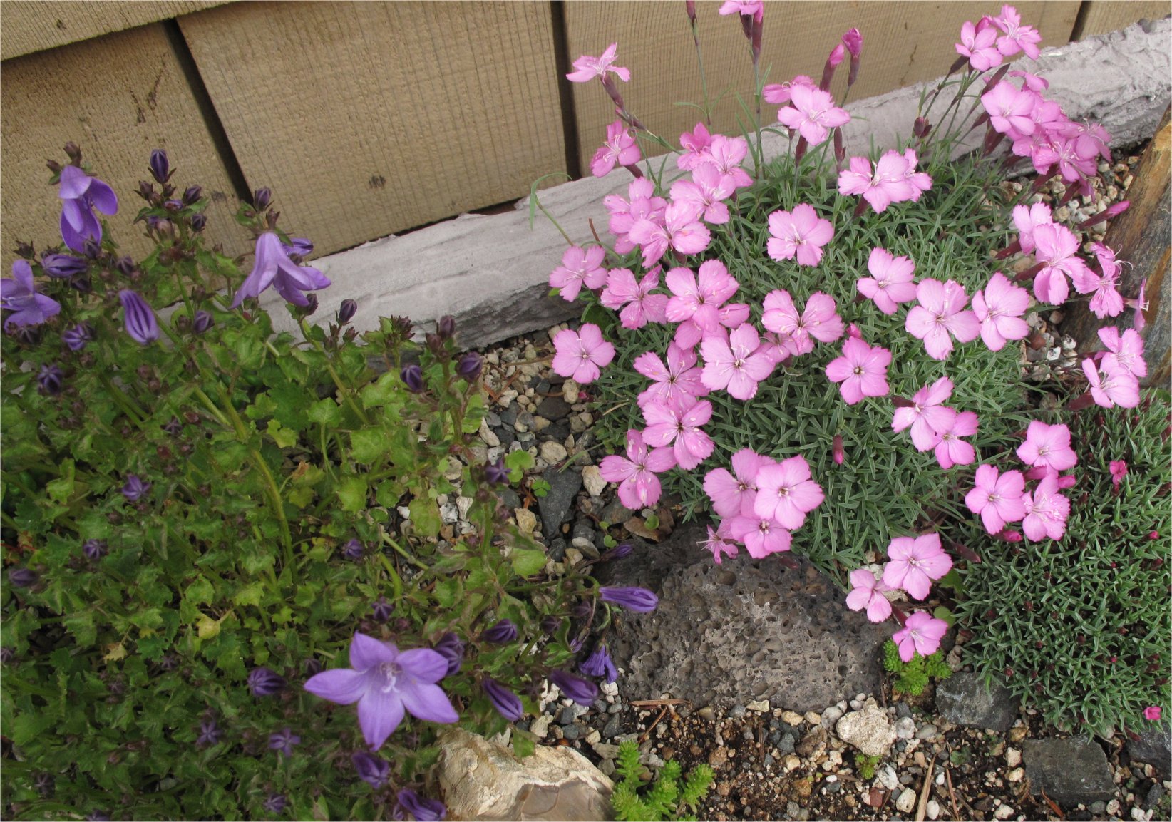 For the last few weeks Alpines lit up troughs and pots that are scattered around the garden. Campanulas, Lewisias and Dianthus are featured. Click each photo for a closer look.