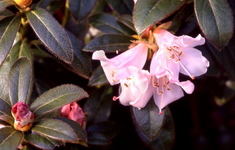 Photo of R. ciliatum by Rollo Adams from the Rhododendron Species Foundation and Botanical Garden in Washington State