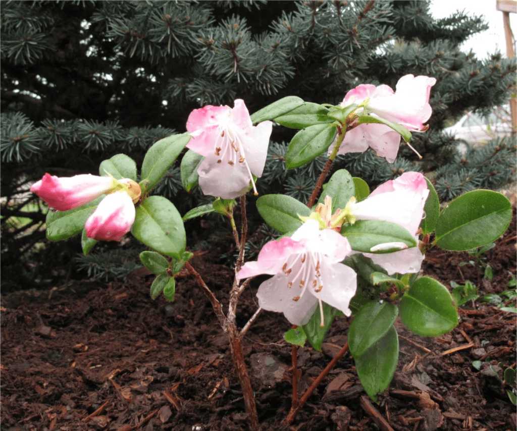 R. moupinense is a species native to western Sichuan, China and derives its name from the district of Moupin. First introduced into cultivation by E.H. “Chinese” Wilson in 1909, a notable English plant collector who introduced a large range of about 2000 Asian plant species to the West. (About 60 sixty bear his name). R. moupinense also begins flowering in early spring.
